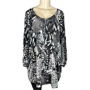 ITEM: Roaman's + 18W Black-White Floral Button Down Cold Shoulder 3/4 Sleeve Shirt Color: Black-White