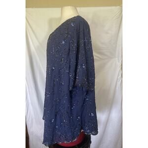 #Plus Size#Beaded#Sequin#Special Occasion#Sparkle#Roamans#Gla#Navy Blue#Formal Top#Vintage Style