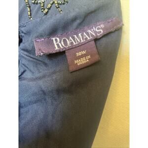 Whether it’s a cruise, a ballroom, or just the best-dressed seat in the pew—this Roaman’s 1X royal navy blue blouse brings the sparkle. Intricate beaded florals shimmer like stars across a fully lined silhouette with a flattering V-neck and zip-back closure. A true head-turner with 3/4 sleeves and just enough drama to whisper, “I didn’t come to play.”