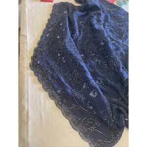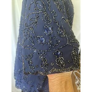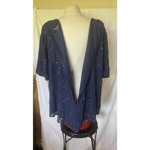Roamans 1X Royal Navy Blue Intricate Bead & Sequin Short Sleeve Dressy Lined EUC