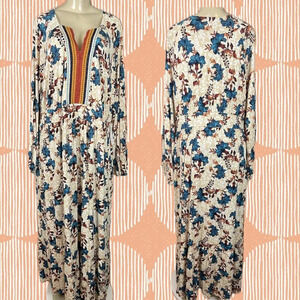 ITEM: Roaman's +22/24 Fall Colors Floral Print Split Neck Long Sleeve Boho Style Maxi Dress