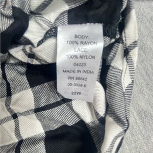 Roamans 22w Plaid Sheer Lace details on shoulder and sleeves Black And White Long Sleeve Button Up NWOT