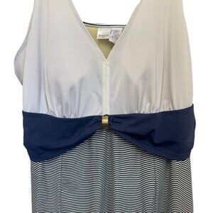 Roaman's 26W Swim Dress Nautical Sailor One Piece Bathing Suit Blue Stripe Plus