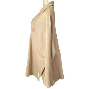Roaman's + 34/36 Beige Thermal Knit Pattern Shawl Collar Long Sleeve Tunic Top