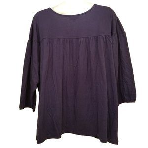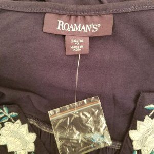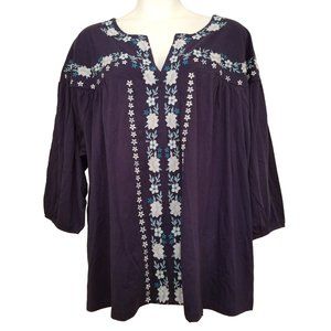 Roamans 4X Blue Floral Embroidered Notch V Neck Top 34 36W