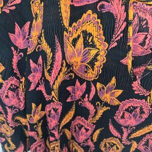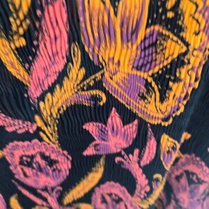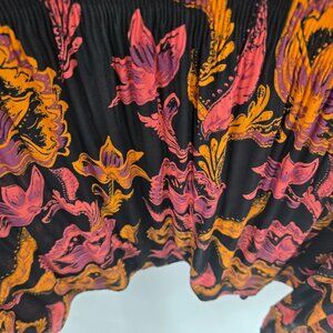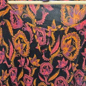 Roaman's Black Orange Pink Floral Unlined Ribbed Textured Tunic Top 32W