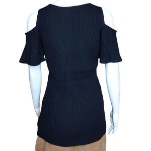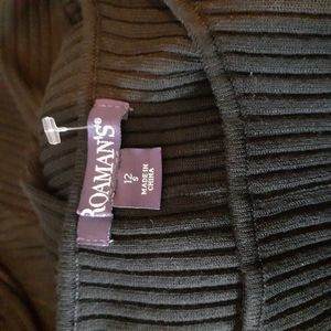 NWOT black ribbed/light sweater-like material cold shoulder bodycon (tight fitting) tunic top in size 12 by Roaman's