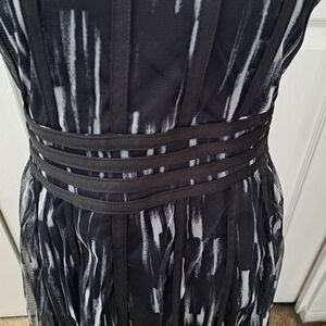 Roaman's Black & White Printed Brushstroke Dress Size 14W