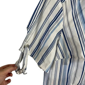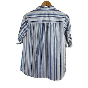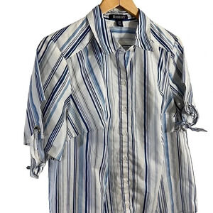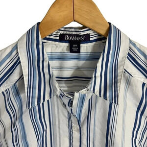 Roamans Blue and White Striped Shirt Plus Size 16W Short Sleeves Button Up Top