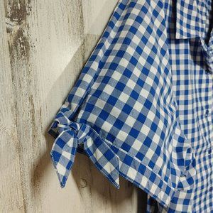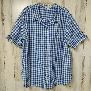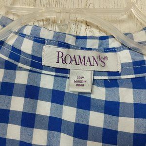 Roaman's Button Up Shirt Women's Plus Size 30W Short Sleeves Blue White Plaid
