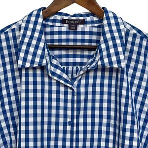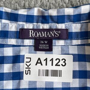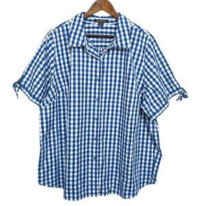 Roaman's Button Up Top Women Size 26W Blue Gingham Plaid Short Sleeve Collared