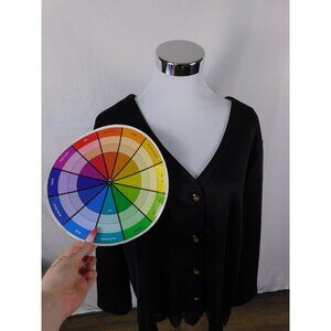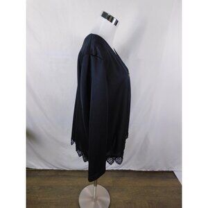 Roaman's Cardigan Womens Black Lace Hem Button Front Long Sleeve Made in USA
