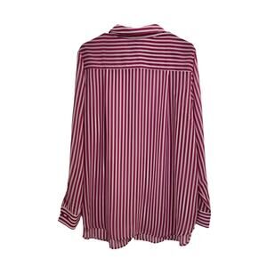 Roaman's Classic Long Sleeve Button Up Pinstriped Boyfriend Shirt Pink Size 18W