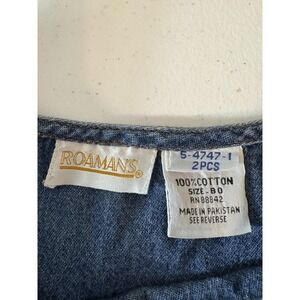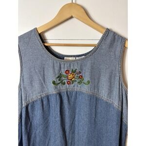 Roamans Denim Dress Womens 20 Blue Sleeveless Embroidered Long Jean Casual