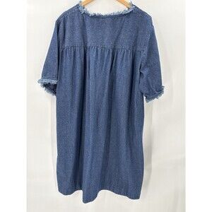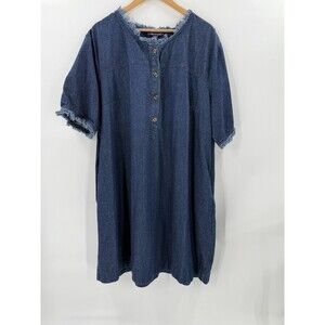 Roamans Denim Shirt Dress Plus Size 28W Blue Jean Knee Length Raw Hem EUC