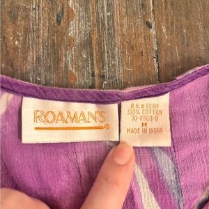 Roaman's Elegant Purple and Green Flower Pattern Tunic