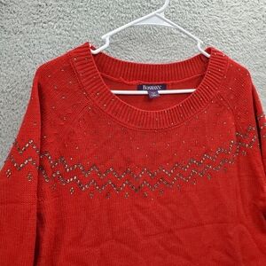 Roaman's Embellished Fair Isle Sweater Red Women's Plus Size 14/16 Knit