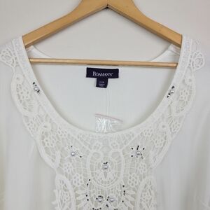 Roaman's Embellished Mesh Overlay Tunic Top Size 22W Ivory Lace Pearl Sheer