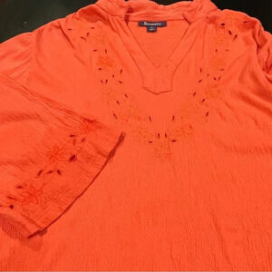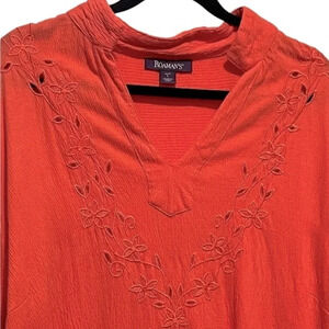 Roamans Eyelet Cutout Crinkle-Knit Gauze Tunic Tropical Melon Orange Womens 18