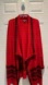 Cherry red color with black a fair isle pattern along the trim, wrists, and hemline.