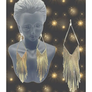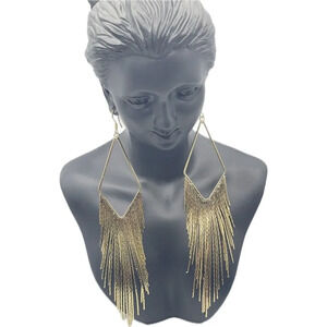 ITEM: Roaman's Gold- Tone Diamond Shaped Cascading Graduated Fringe Dangle Earrings