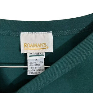 Roamans Hunter Green T Shirt Plus Size 1X Front Pocket Crewneck Short Sleeves