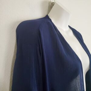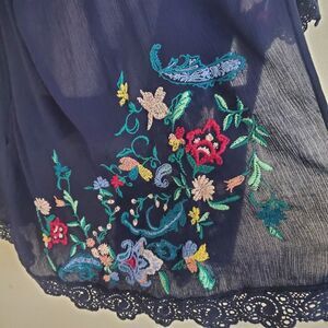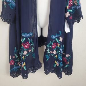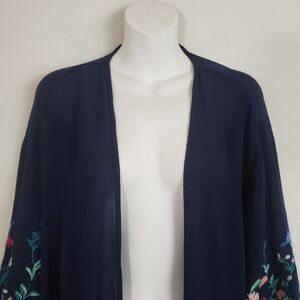 Roaman's Kimono Navy Blue 2X Duster Topper Floral Embroidered Boho Hippie