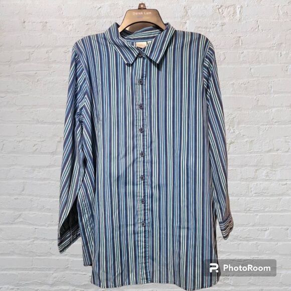 Roaman's Ladies Blue Cotton Button Down Striped Blouse Size 1X