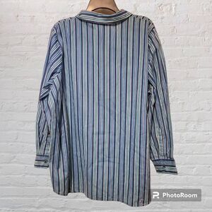 Roaman"s Ladies Blue Cotton Button Down Striped Blouse Size 1X. You don't see many Button Down shorts like this for women. It's clean. Pre-owned with no holes. All buttons are intact.