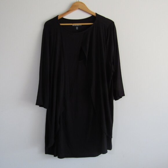 Roaman's Layered Shift Dress 1X Black Casual Classic Lagenlook Stretchy NWT