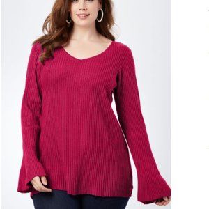 Roaman's Fit & Flare Slimming Berry Pink Sweater NEW 2X fits 22/24 Bust 26" L31"