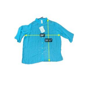 Roamans NWT Sheer Turquoise Button-Up Blouse Sz 1X Top Swim Cover Up