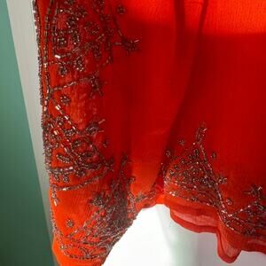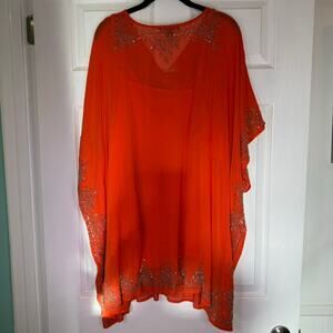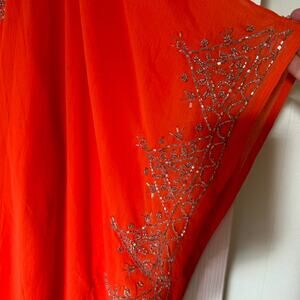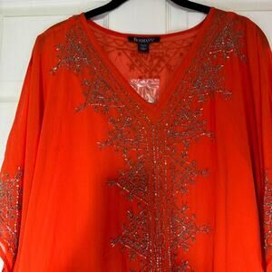 Roaman's Orange Beaded Caftan Top 2PC Set Plus 22/24 1X Sheer Tunic India