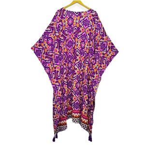Roamans Oversized Kaftan Maxi Dress Size 1X Cover Up Multicolor Boho Beach