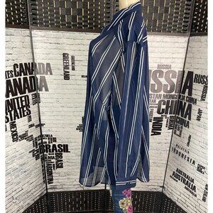 ITEM: Roaman's Plus 34W Sheer Navy Blue Double Vertical Striped Button Collar Long Sleeve Top