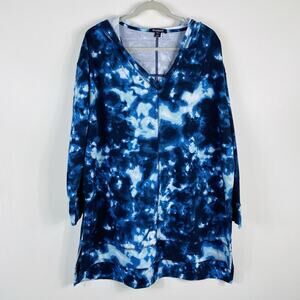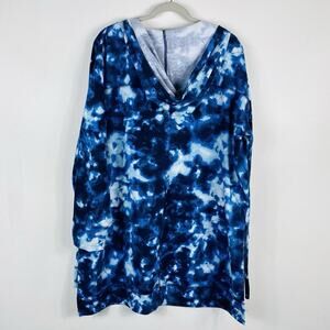 Roaman's Plus Size 18 20 Tie Dye French Terry Tunic Hoodie Sweatshirt Blue