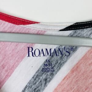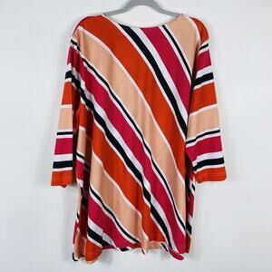 Roaman's Plus Size 30 32 Diagonal Stripe 3/4 Sleeve V-Neck Tee Top Cotton Blend