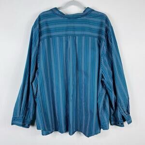 Roaman's Plus Size 36 Striped Long Sleeve Button Front Shirt Top Blue Cotton