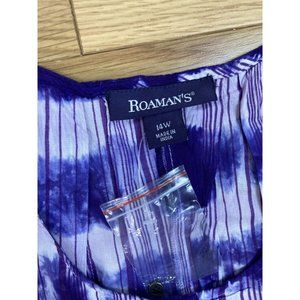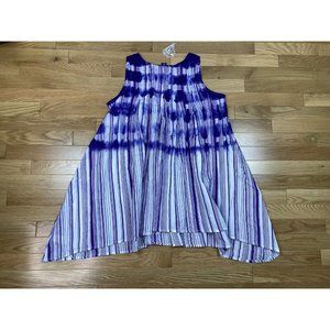 NWOT Roamans Striped Tie Dye Sleeveless Tunic Top Womens Plus 14W Purple Summer