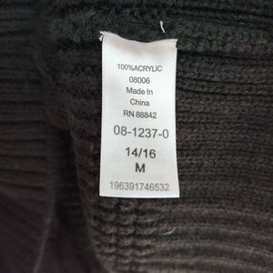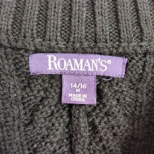 The Roaman's Sweater is a stylish and versatile pullover crew neck sweater designed for women in sizes 14-16. Made from acrylic material, this black sweater features pearl accents that add a touch of elegance to the classic cable-knit pattern. The long sleeves, crew neck, and regular fit make it a comfortable and fashionable choice for the colder seasons. Machine washable for easy care, this sweater is a practical and chic addition to any wardrobe.