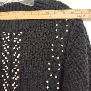 Roaman's Sweater Women's 14/16 Black Pearl Accents Cable Knit Pullover Crew