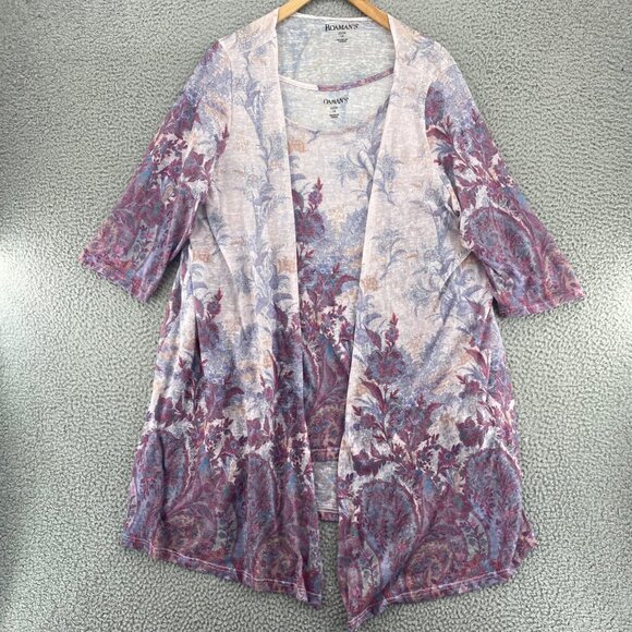 Roamans Sweater Womens 1X Plus Purple Floral 2 Piece Set 1/2 Sleeves Cardigan