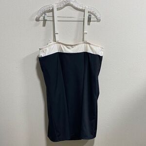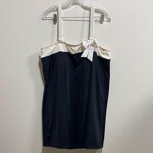 Roaman’s Swim Black & White One Piece Swimdress 22W Bow Detail Built-in Bra