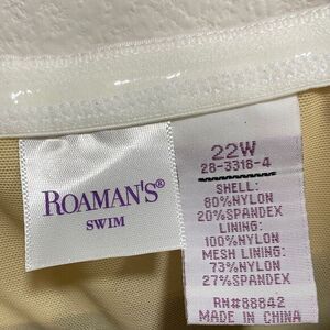Roaman’s swimdress, plus size swimsuit, black white trim swimwear, retro bow bathing suit, tummy control swimdress, vintage-inspired one-piece, full coverage swimwear, built-in bra swimsuit, modest plus swimwear, 22W swimdress