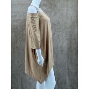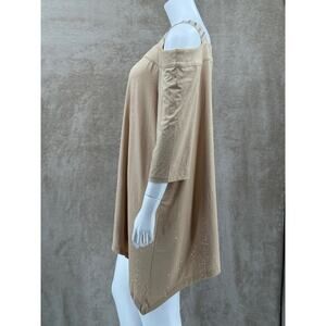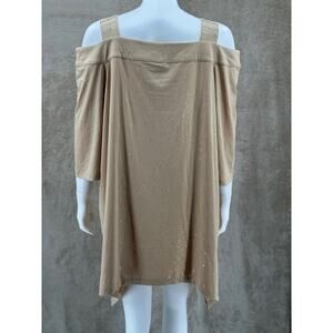 Roamans Top Womens 18 20 Tan Tunic Cold Shoulder Sparkle Embellished Party NYE
