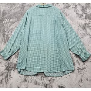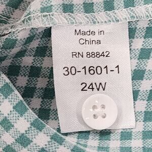 Roaman's Top Womens 24W Green Check Plaid Kate Tunic Long Sleeves Button Down