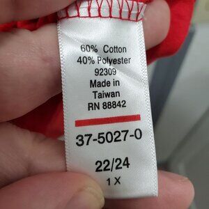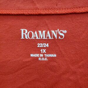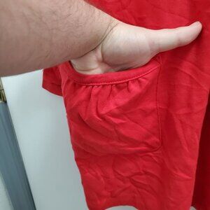 Roaman's Woman's Red Soft Jersey Knit Pleated LS Pocket Tunic Plus Size 1X 22/24