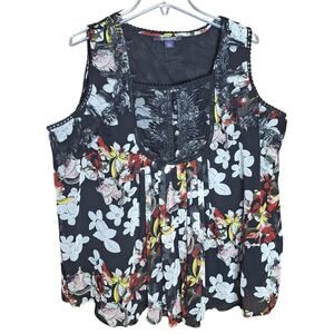 Roaman's Women 20W Black Floral Lace Accent Flowy Embroidered Coquette Tank top