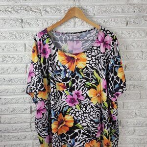 Roamans Women Top 3X Short Sleeve Yellow Floral Poly Blend Career FLO32E