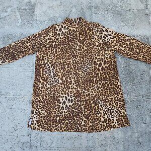Roaman's Women Top Dress Shirt Turtleneck Animal Print Brown Cotton Size L 18-20